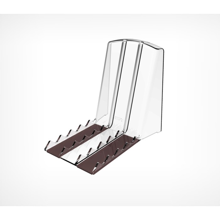 Большая пластиковая задняя опора на магнитном основании обеспечивает ее крепление на металлической полке, а ребристые выступы в нижней части удерживают плоские упаковки товара.