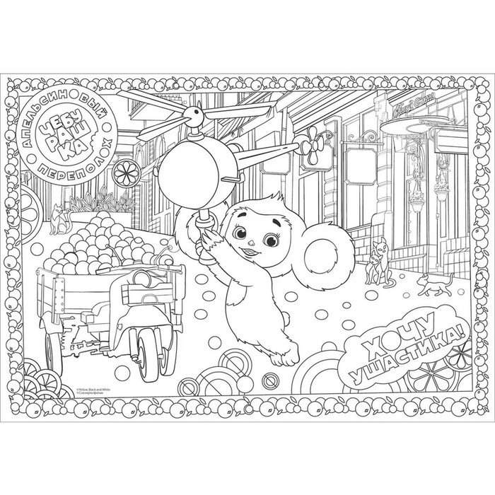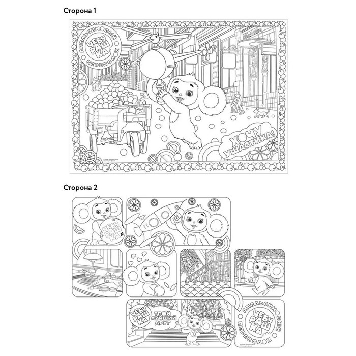 Большая раскраска поможет ребёнку весело провести время одному или в компании друзей. Внутри изображения Чебурашки — любимого персонажа популярного мультфильма. Раскраска двусторонняя, внутри неё есть интересные задания.