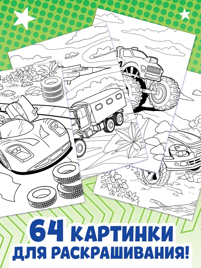 Большая раскраска для мальчиков — это простор для творчества, где каждая страница превращается в увлекательное приключение. 64 разнообразных картинки с изображениями машин, самолётов и другой техники подарят часы радости и помогут развить важные навыки.