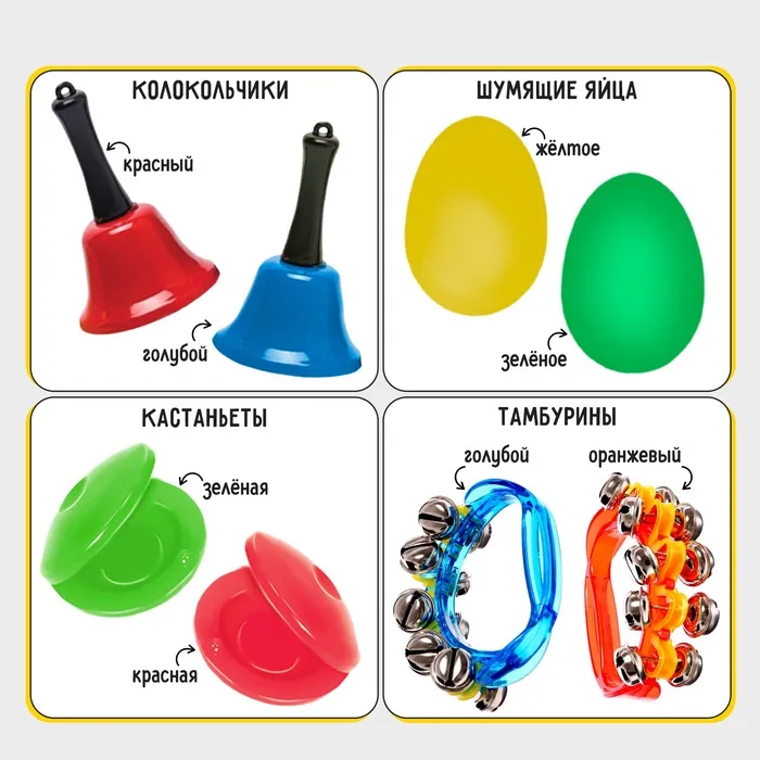 Большой логоритмический набор — увлекательное развлечение для детей от 3 лет. С такими игрушками маленький непоседа устроит концерт с музыкальными инструментами у себя дома, а также потренирует чувство ритма, координацию и фонетический слух.