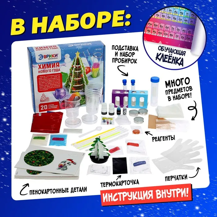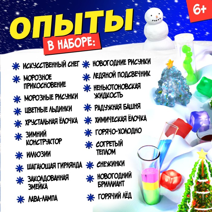 Большой набор для опытов «Новогодняя химия», 20 опытов — Характеристики