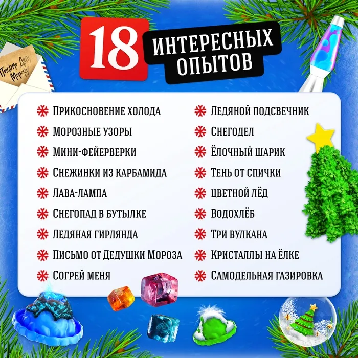 Большой набор опытов «Новый год!», 18 опытов, 34 предмета — Характеристики