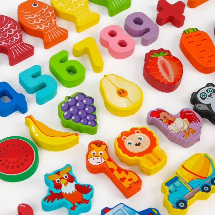 - 14 магнитных деталей для увлекательной игры в магнитную рыбалку! С помощью удочки, входящей в комплект, ваши дети смогут ловить яркие детали и развивать координацию движений.