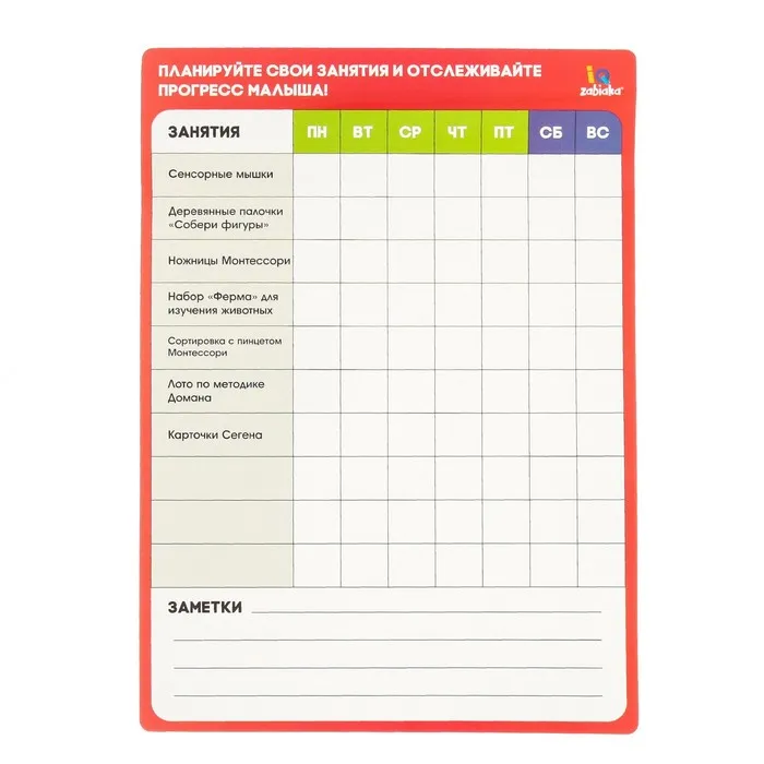 - Планер. Отслеживайте прогресс малыша и планируйте новые занятия!