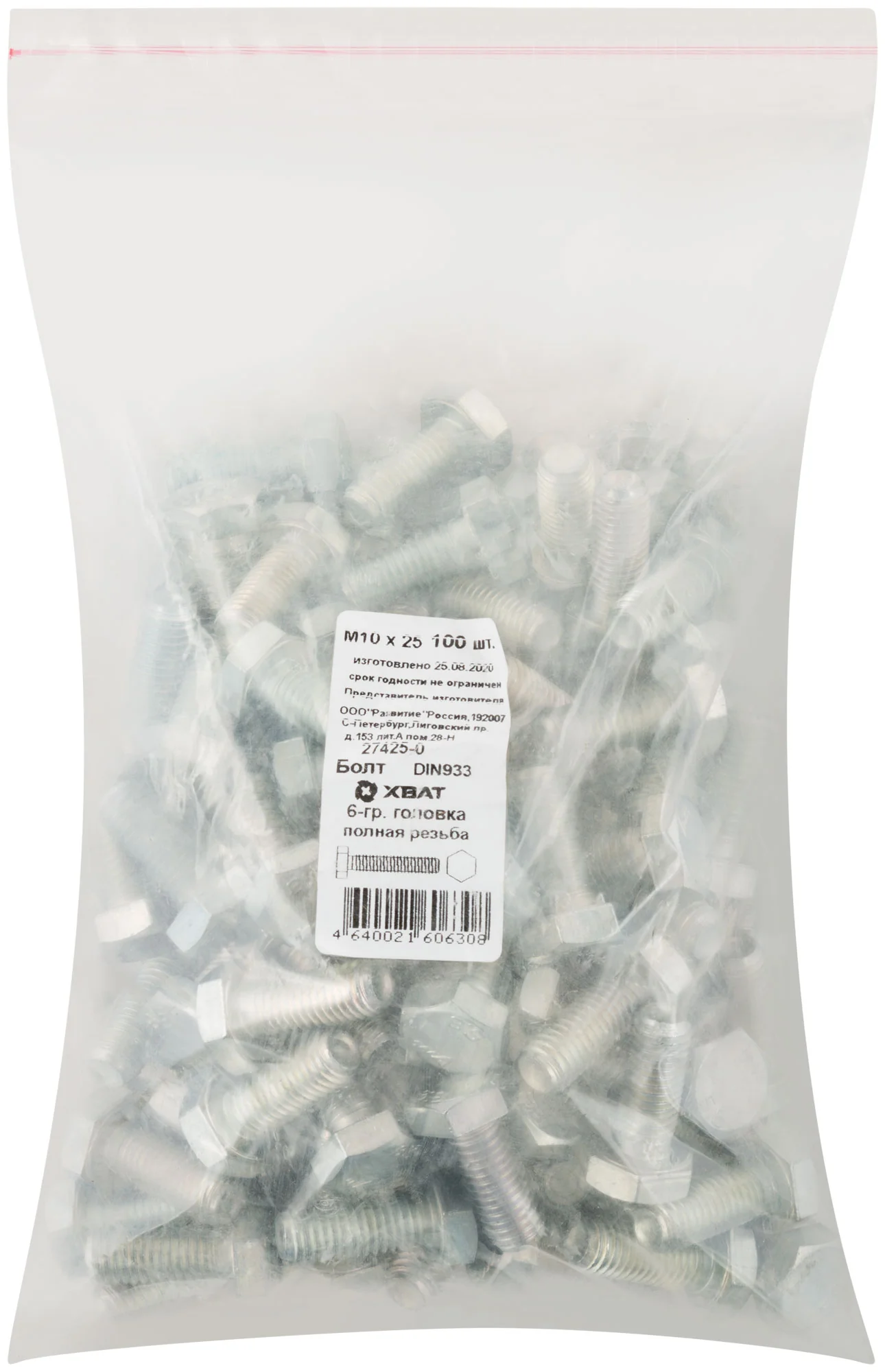 Болт 6-гранная головка М10 х 25 с полной резьбой для надежного крепежа