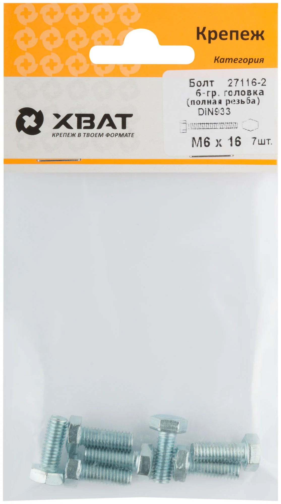 Болт 6-гранная головка (полная резьба) М6 х 16 (фасовка 7 шт) DIN933