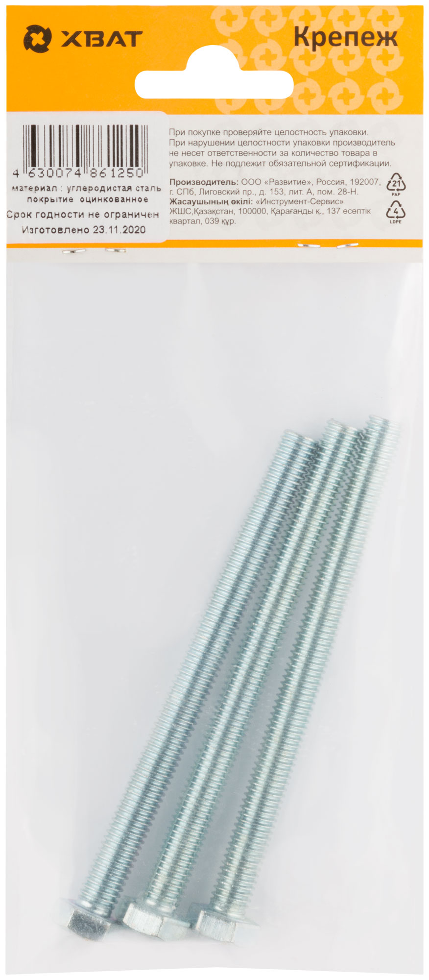 Изготовленный из конструкционной оцинкованной стали, этот болт обладает классом прочности 8.8, что делает его подходящим для использования в условиях, требующих высокой надежности крепежа. Полная резьба обеспечивает максимальную фиксацию и устойчивость к нагрузкам.