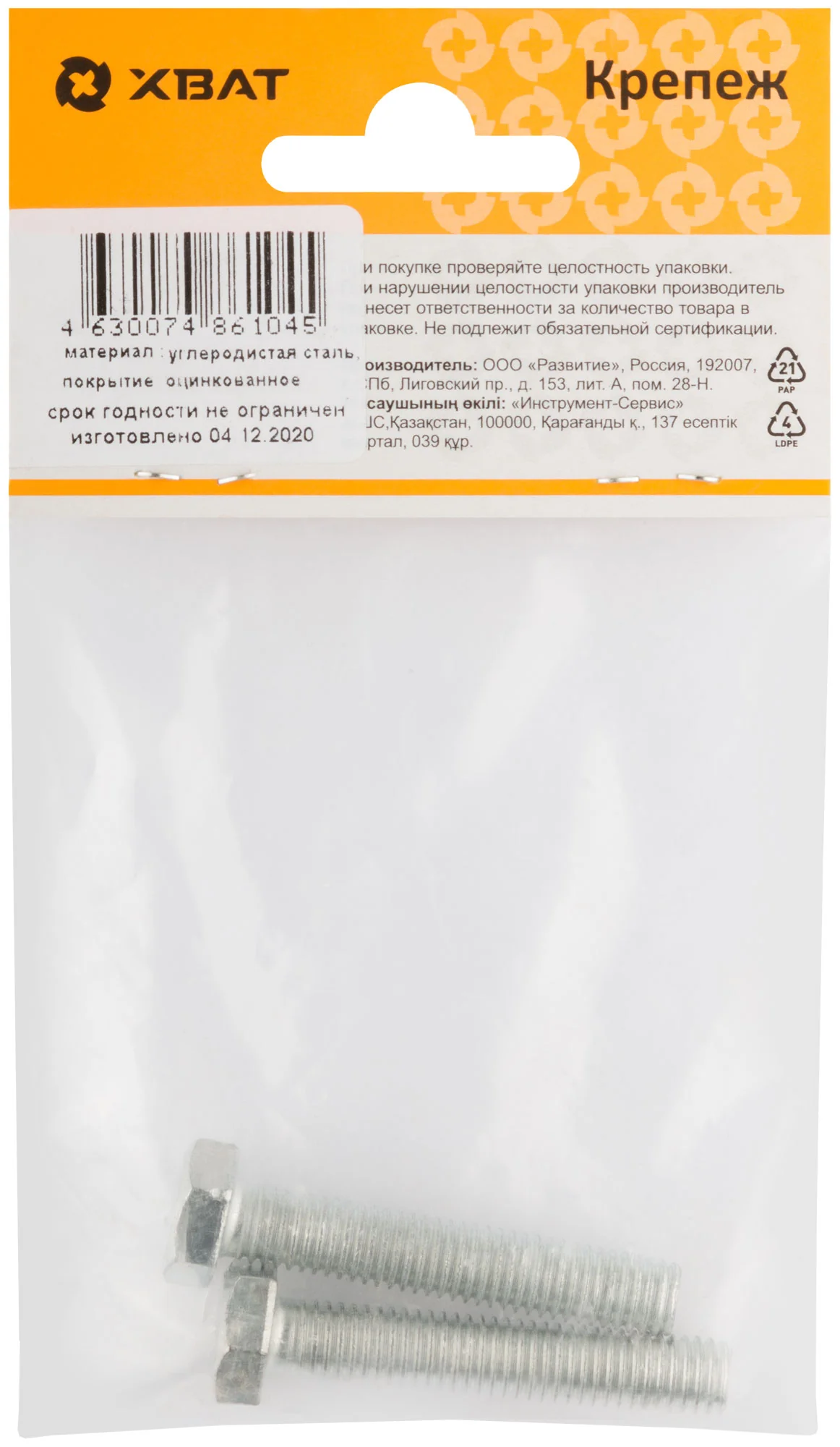 Болт изготовлен из конструкционной оцинкованной стали, что придает ему высокую прочность и устойчивость к коррозии. Класс прочности 8.8 гарантирует надежность и долговечность соединений.