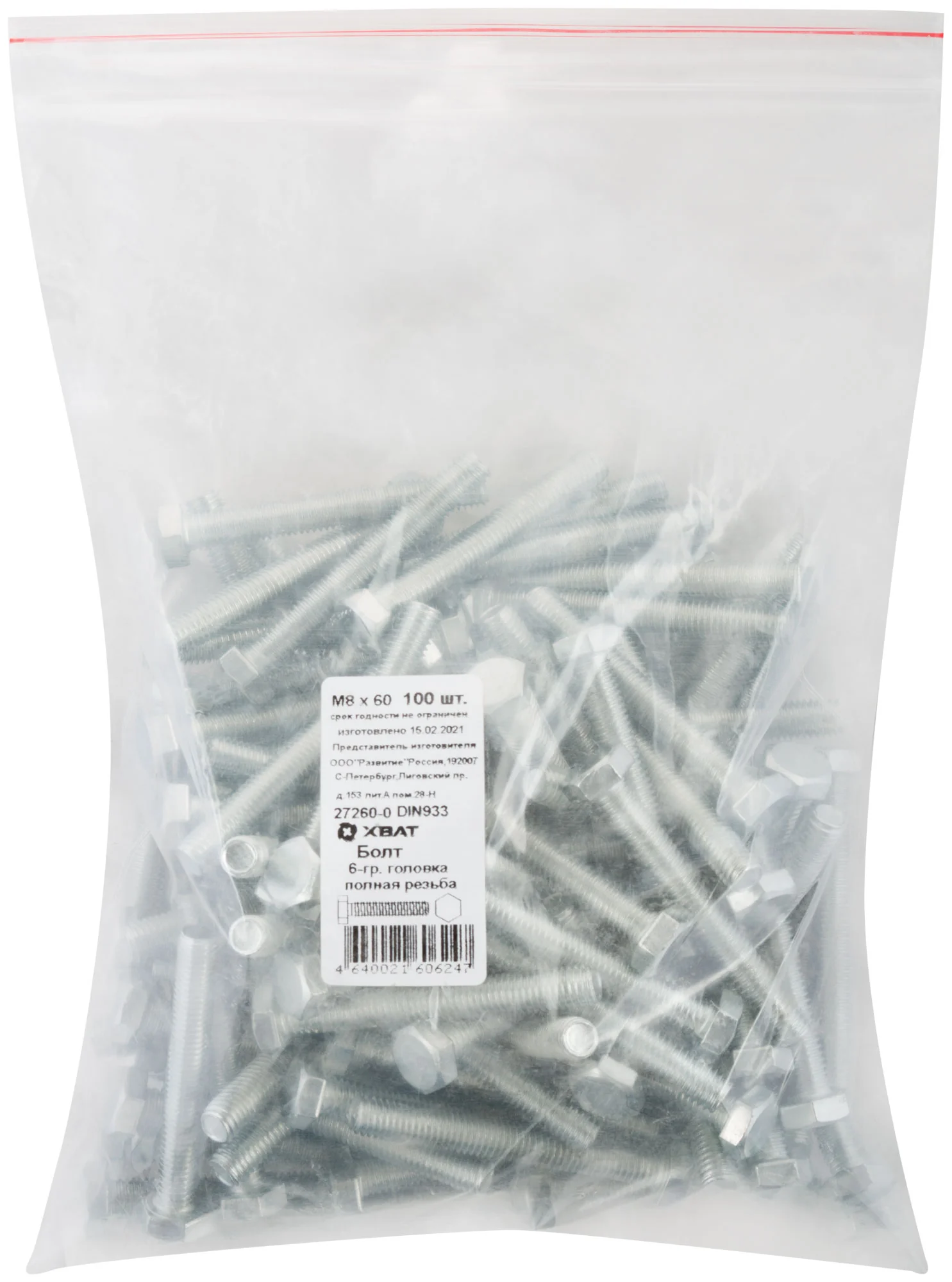 Болт с 6-гранной головкой М8 х 60 для надежного крепления