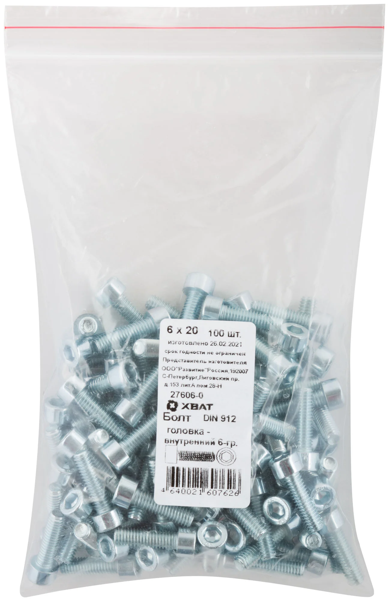 Болт, головка - внутренний 6-гранник DIN 912 6х20 100 шт Фасовка