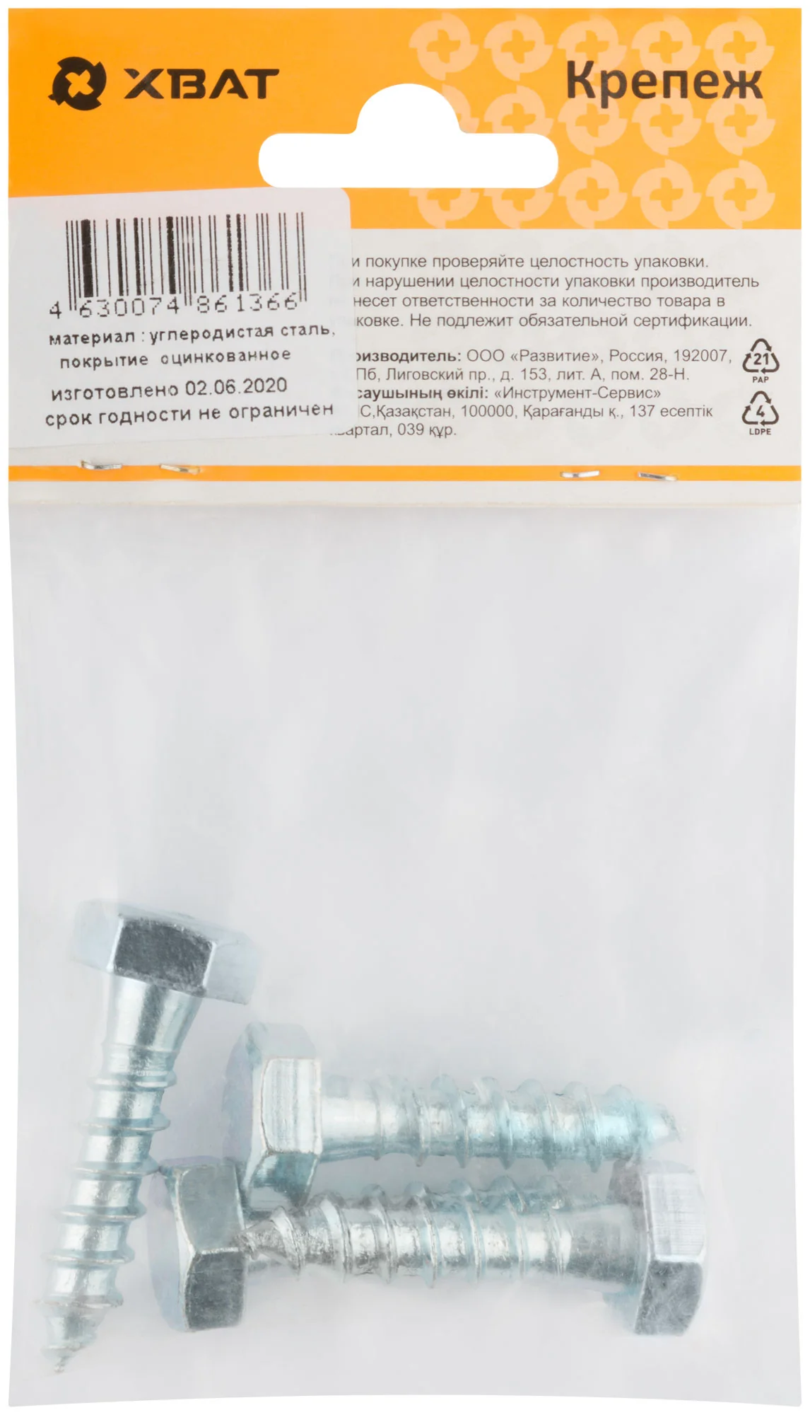 Болт изготовлен из качественной стали с оцинкованным покрытием, что обеспечивает долговечность и устойчивость к коррозии. Шестигранная головка позволяет легко использовать стандартные инструменты для монтажа. Острый наконечник и редкий шаг резьбы под углом 600 обеспечивают надежную фиксацию.