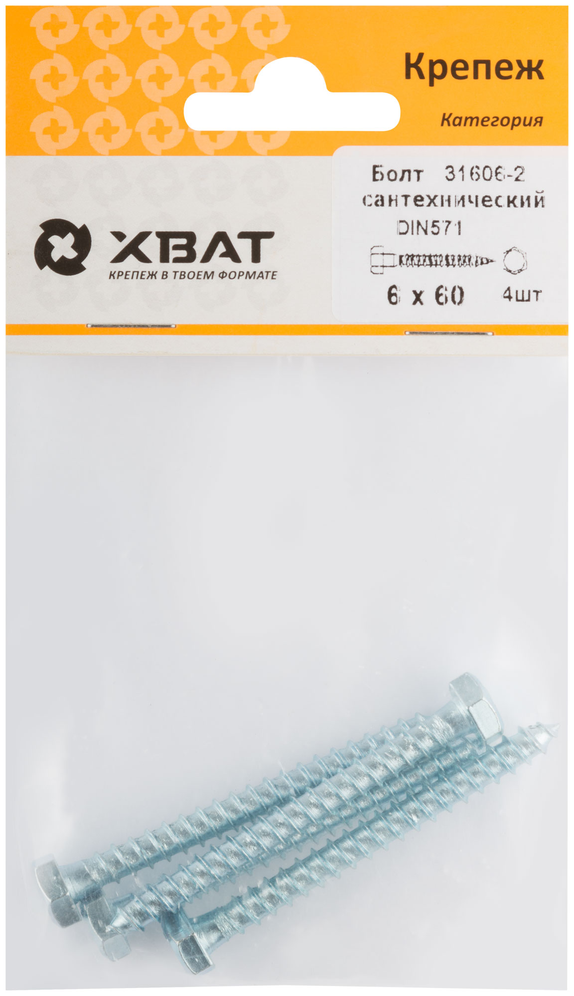 Болт сантехнический DIN 571, типоразмера 6x60, идеально подходит для крепления деревянных конструкций, таких как лаги и рейки. Используйте его для сборки и монтажа в сантехнических проектах, где требуется надежное закрепление.