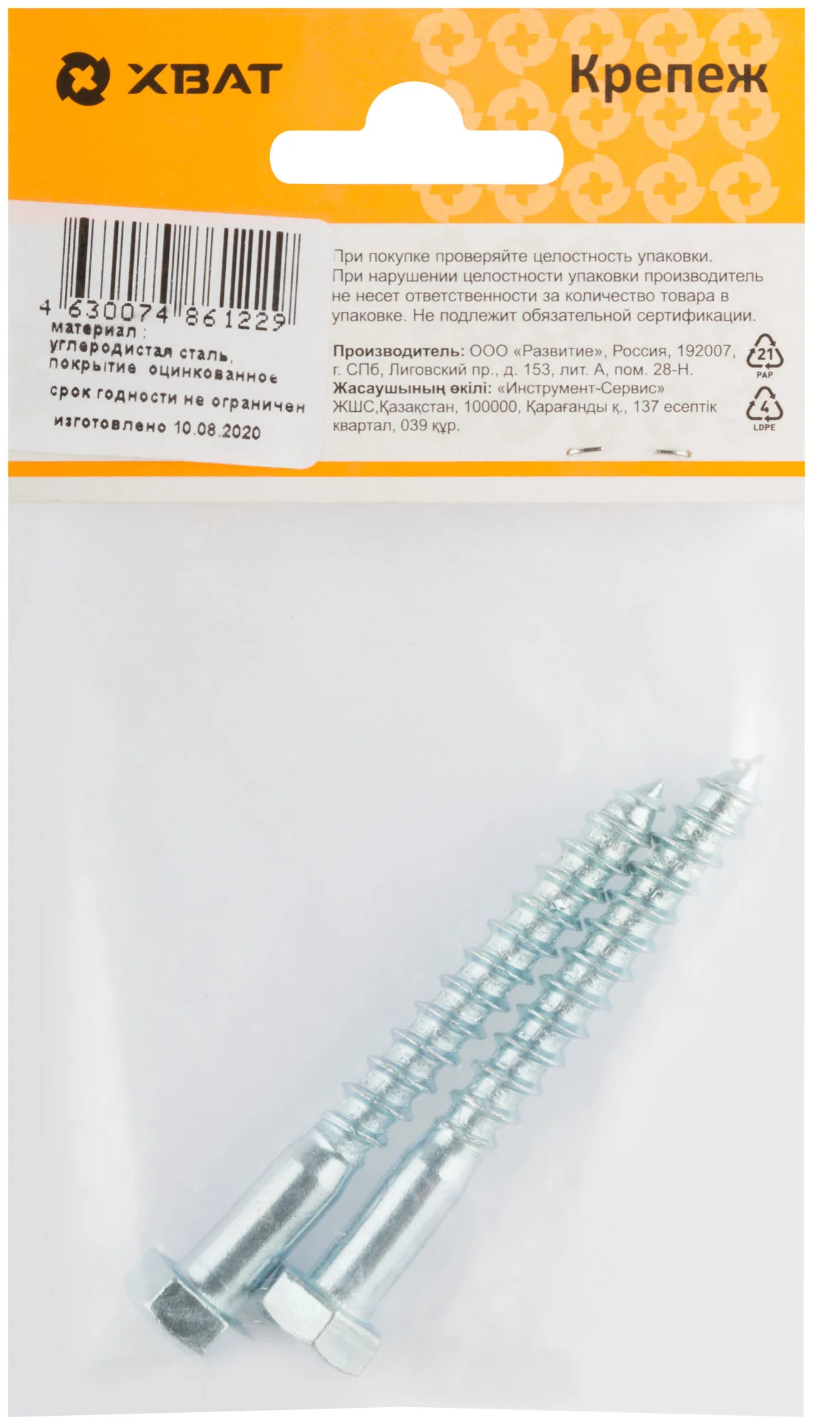 Болты выполнены с шестигранной головкой, что обеспечивает удобство при закручивании и надежную фиксацию. Изготовлены из прочной стали и имеют оцинкованное покрытие, что защищает от коррозии и продлевает срок службы.