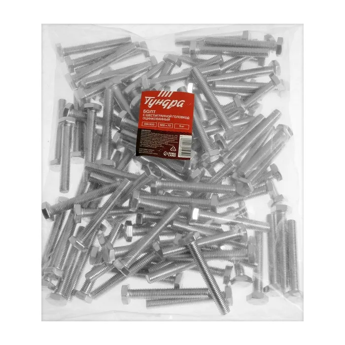 Болт ТУНДРА, оцинкованный, DIN 933, класс прочности 8.8, М10х70 мм, 5 кг. — Характеристики