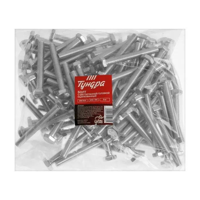 Болт ТУНДРА, оцинкованный, DIN 933, класс прочности 8.8, М10х80 мм, 5 кг. — Характеристики