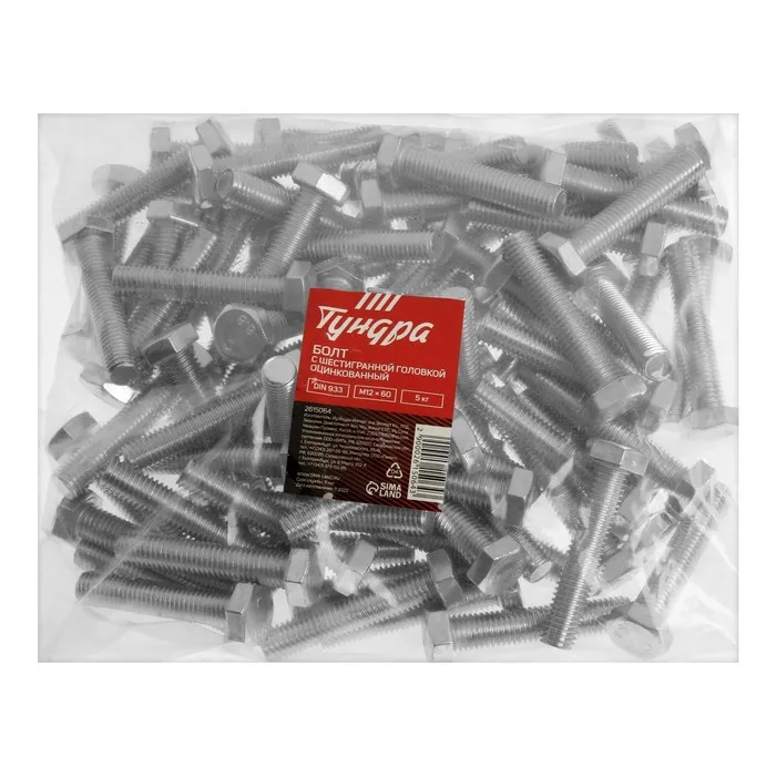 Болт ТУНДРА, оцинкованный, DIN 933, класс прочности 8.8, М12х60 мм, 5 кг. — Характеристики