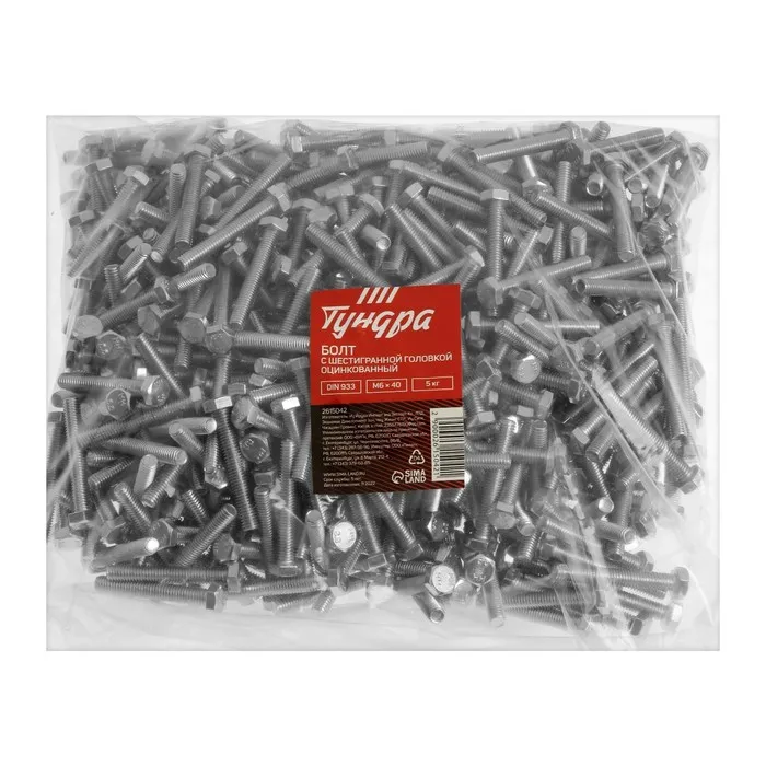 Болт ТУНДРА, оцинкованный, DIN 933, класс прочности 8.8, М6х40 мм, 5 кг — Характеристики