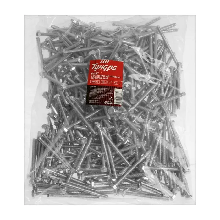 Болт ТУНДРА, оцинкованный, DIN 933, класс прочности 8.8, М6х70 мм, 5 кг — Характеристики