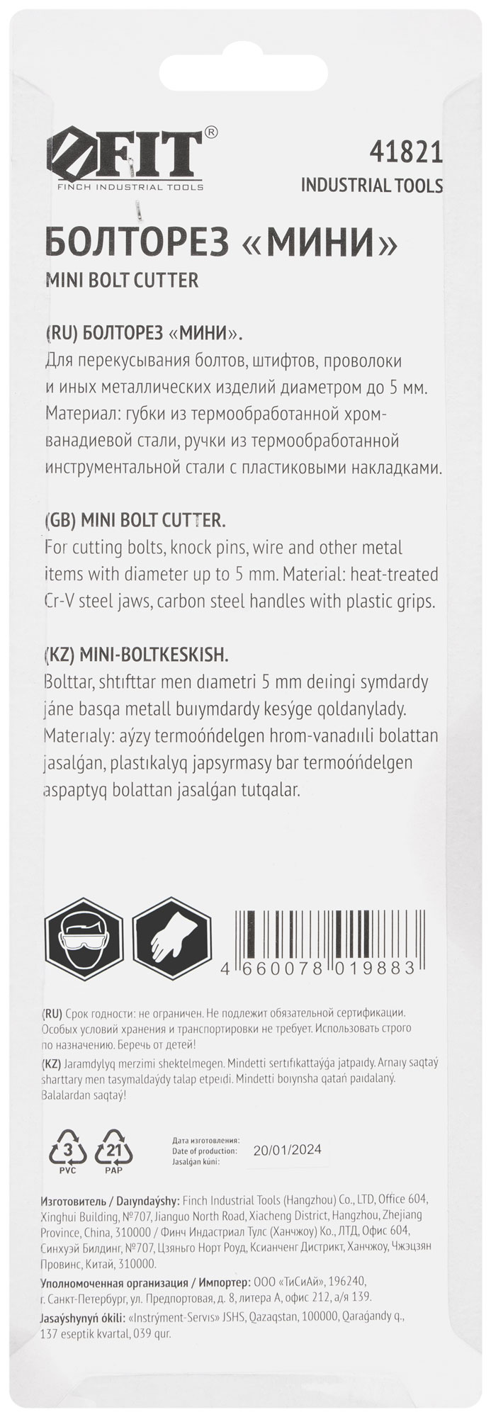 Выберите мини болторез FIT 41821, чтобы легко и быстро справляться с задачами перекусывания проволоки в любых условиях.