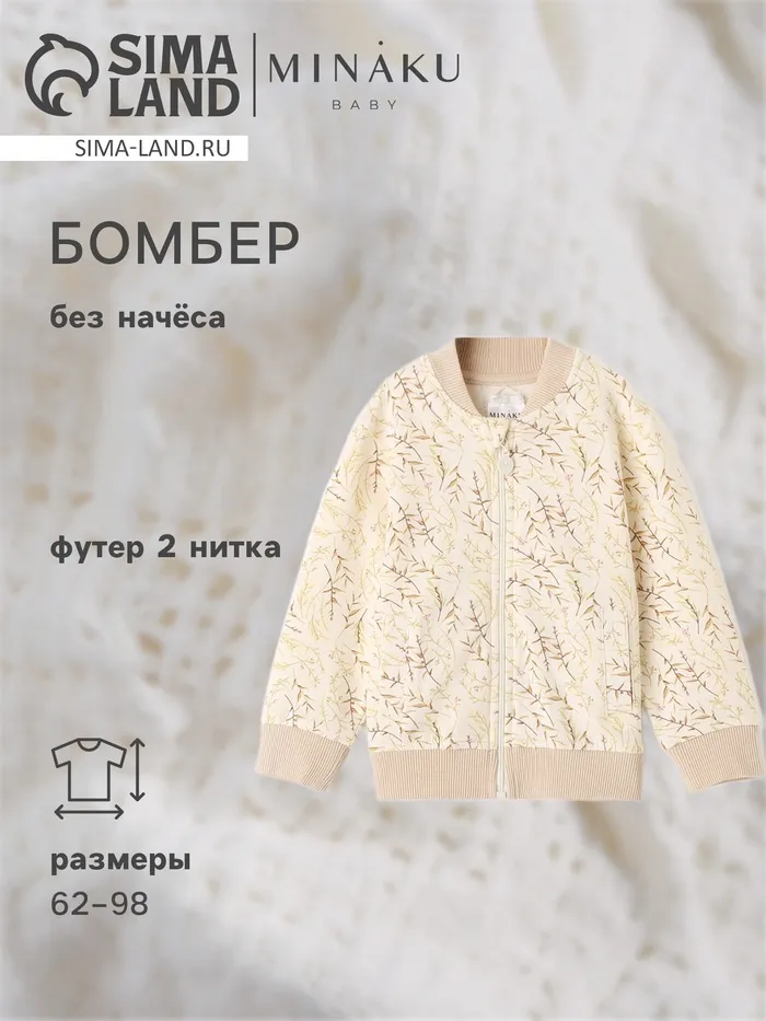Бомбер детский MINAKU "Nature", цвет бежевый, рост 68-74 см — Характеристики