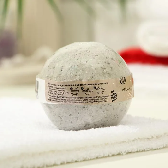 Бурлящий шар для ванны с натуральной морской солью, с ароматными маслами. Бархатистость, нежность кожи. Нормализует уровень Ph, благотворно влияет на ногти. Подходит для любого типа кожи.
