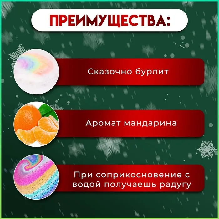 Эта новогодняя бомбочка станет прекрасным и запоминающимся подарком для друзей и близких, ведь её оригинальность, праздничный дизайн и волшебный эффект впечатлит каждого. Упаковка выполнена в стиле новогодних праздников, подчеркивая эксклюзивность и изящество подарка.