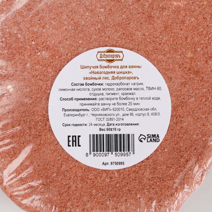 Бомбочка для ванн «Новогодняя шишка» аромат хвойного леса, 50 г — Характеристики