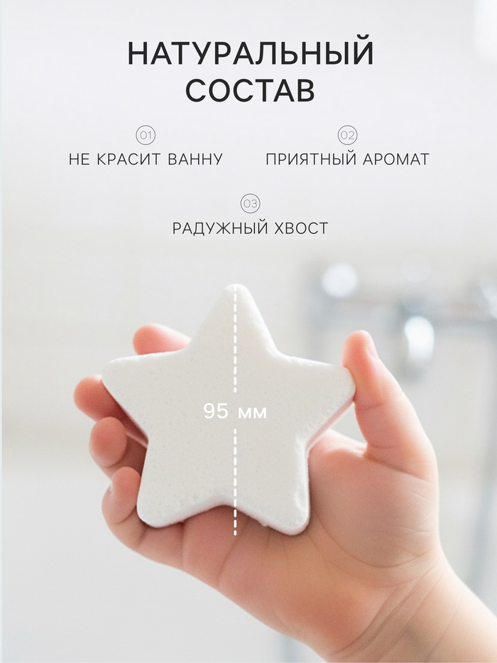 Яркая плавающая звезда превратит купание в настоящее радужное приключение. Если аккуратно положить белую звезду на поверхность воды, она начнет создавать чарующие радужные разводы, наполняя ванну цветом и весельем.