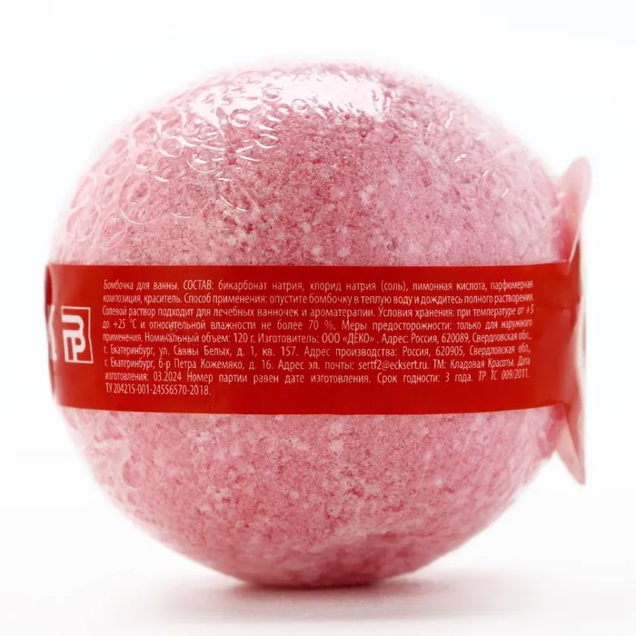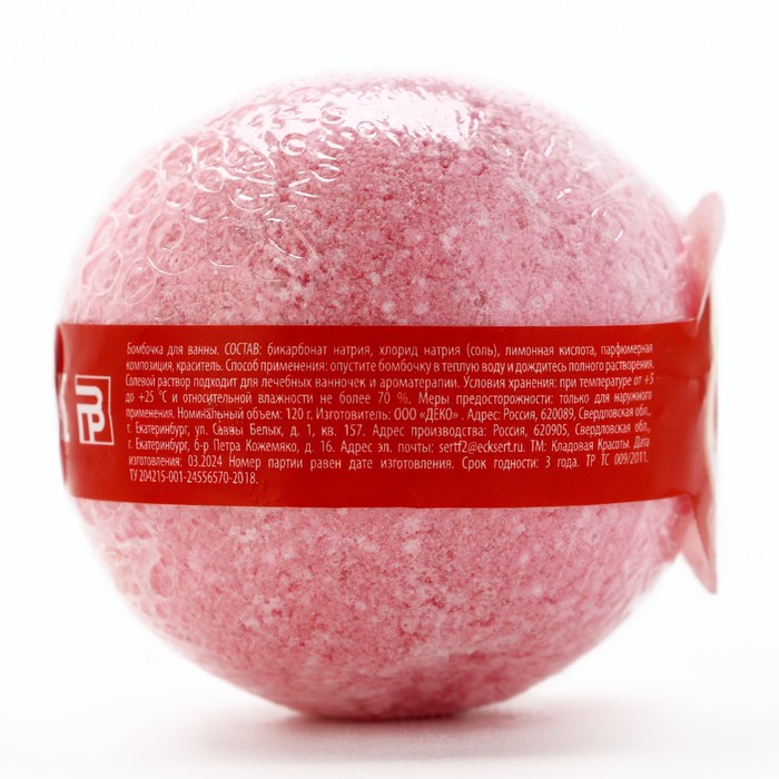 Бомбочка для ванны, 120 г, аромат клубники со сливками, Кладовая красоты — Характеристики