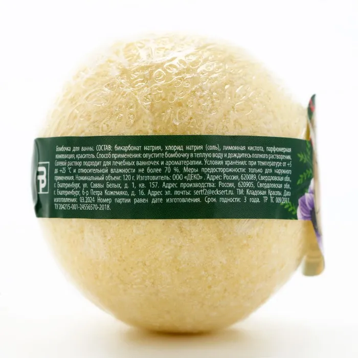 Бомбочка для ванны, 120 г, аромат полевых трав, Кладовая красоты — Характеристики
