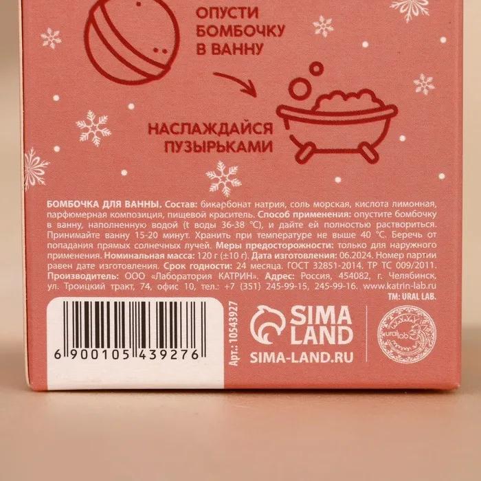 Бомбочка для ванны, 120 г, аромат пряного глинтвейна — Характеристики