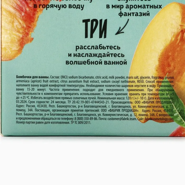 Бомбочка для ванны, 130 г, аромат персика, BEAUTY FOOD — Характеристики