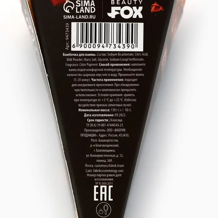 Бомбочка для ванны, 130 г, аромат шоколадного брауни, CANDY FOOD — Характеристики