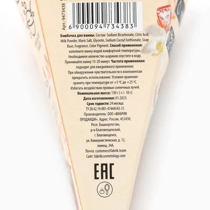 Бомбочка для ванны, 130 г, аромат ванили и карамели, CANDY FOOD — Характеристики