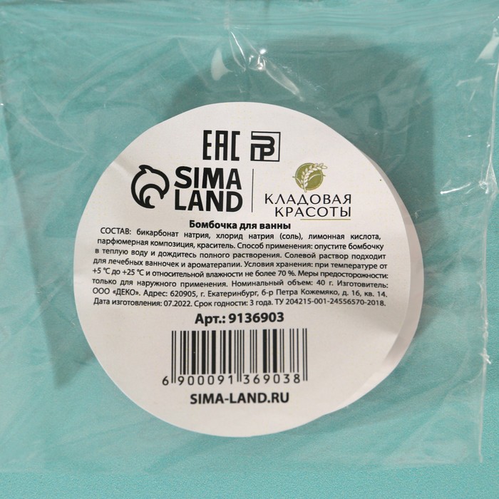 Бомбочка для ванны, 40 г, аромат лесных ягод, КЛАДОВАЯ КРАСОТЫ — Характеристики