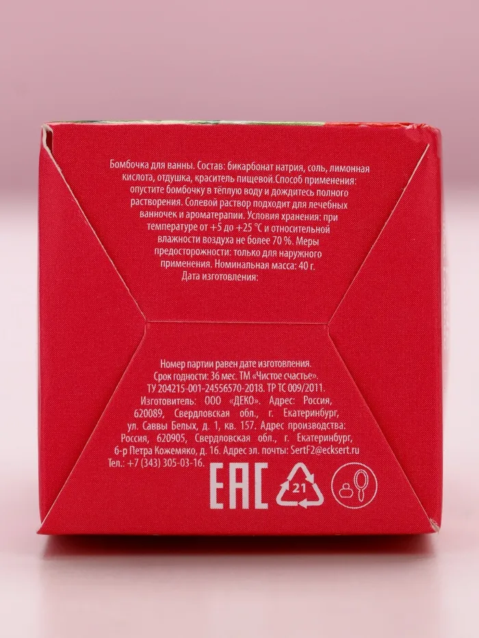 Бомбочка для ванны «8 Марта», 40 г, аромат ягодного смузи, Чистое счастье — Характеристики