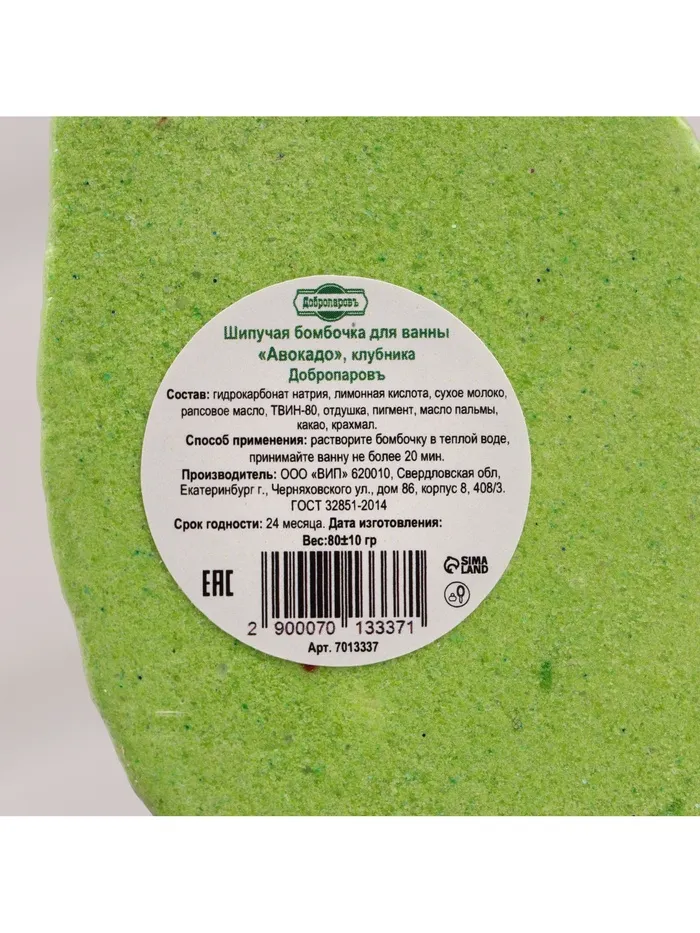 Бомбочка для ванны "Авокадо", клубника, 90 гр "Добропаровъ" — Характеристики