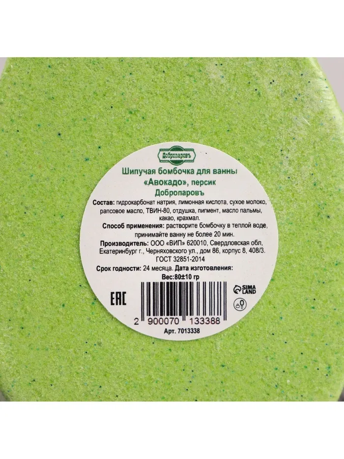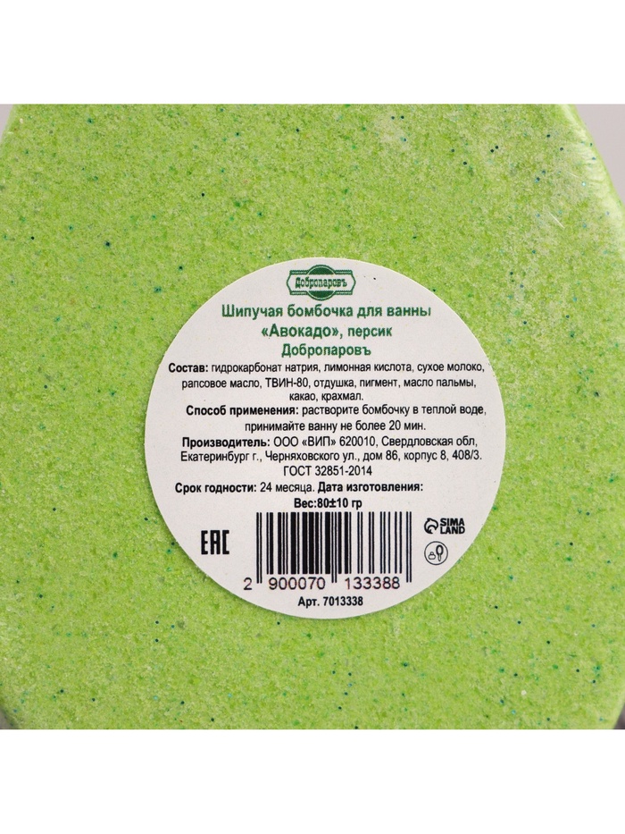Бомбочка для ванны "Авокадо", персик, 90 гр "Добропаровъ" — Характеристики