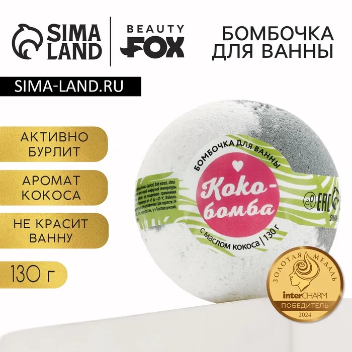 Бомбочка для ванны BEAUTY FOX «КоКо-Бомба», 130 г, аромат кокоса — Характеристики