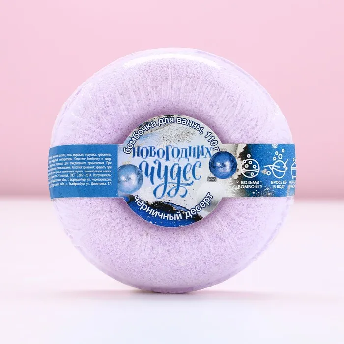 Бомбочка для ванны «Чудес!», 110 г, аромат черничного десерта, Чистое счастье — Характеристики