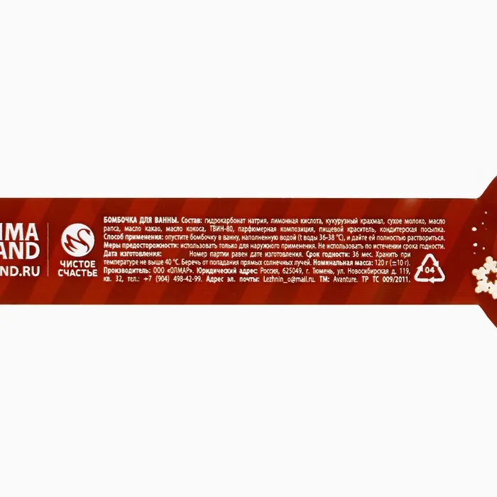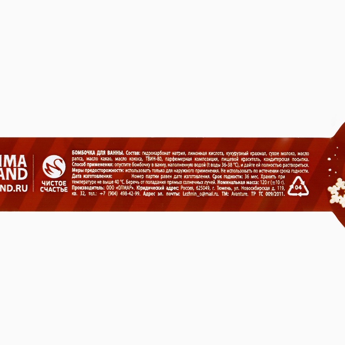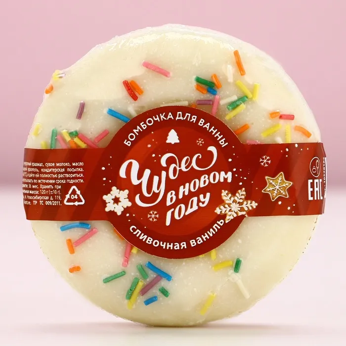 Бомбочка для ванны «Чудес в Новом году», 120 г, аромат сливочной ванили, Чистое счастье — Характеристики