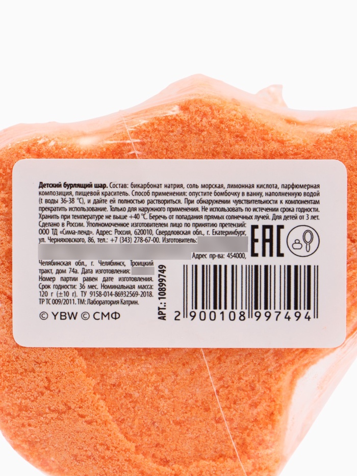 Бомбочка для ванны формовая детская, 120 г, Чебурашка — Характеристики