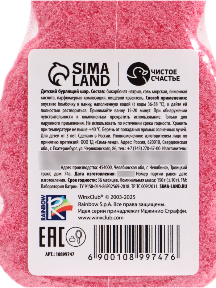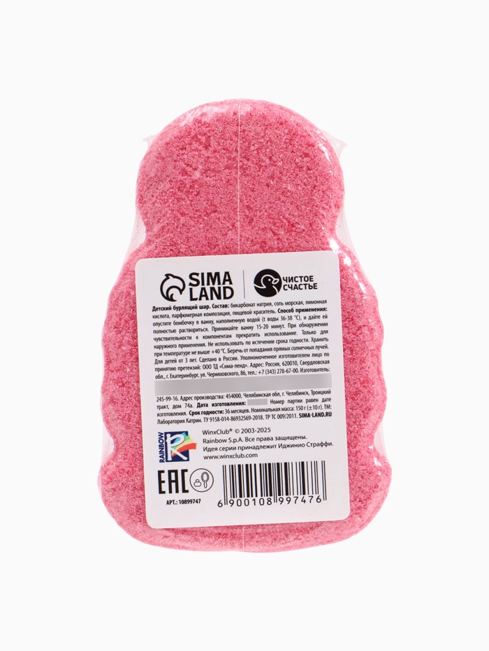 Бомбочка для ванны формовая детская, розовая, 150 г, Винкс — Характеристики