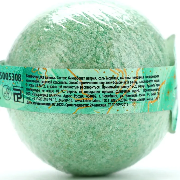 Состав: гидрокарбонат натрия, лимонная кислота, глицерин, парфюмерная композиция, пищевой краситель.