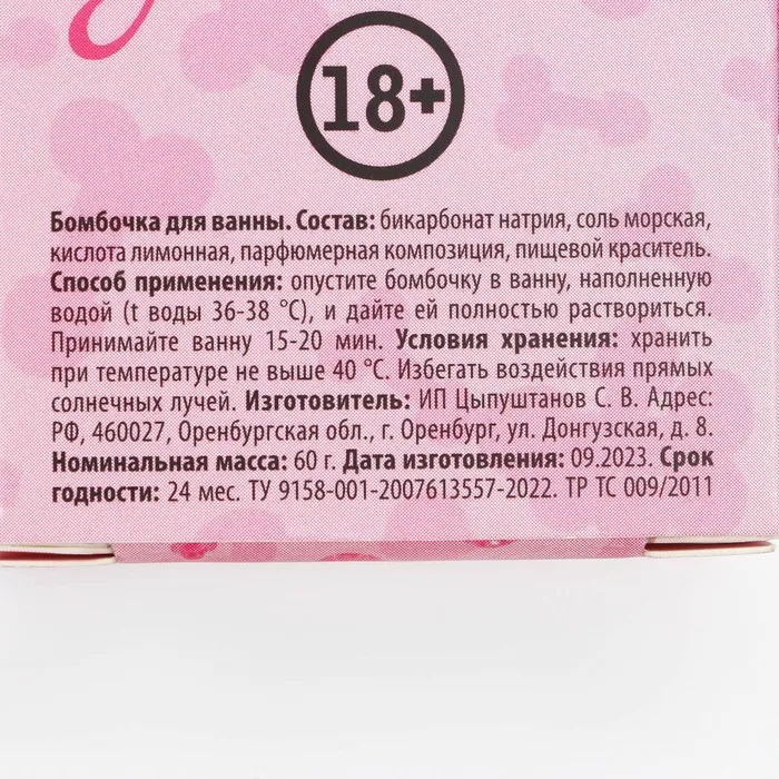 Бомбочка для ванны «Гламурного года», 60 г, аромат малины, 18+, Чистое счастье — Характеристики