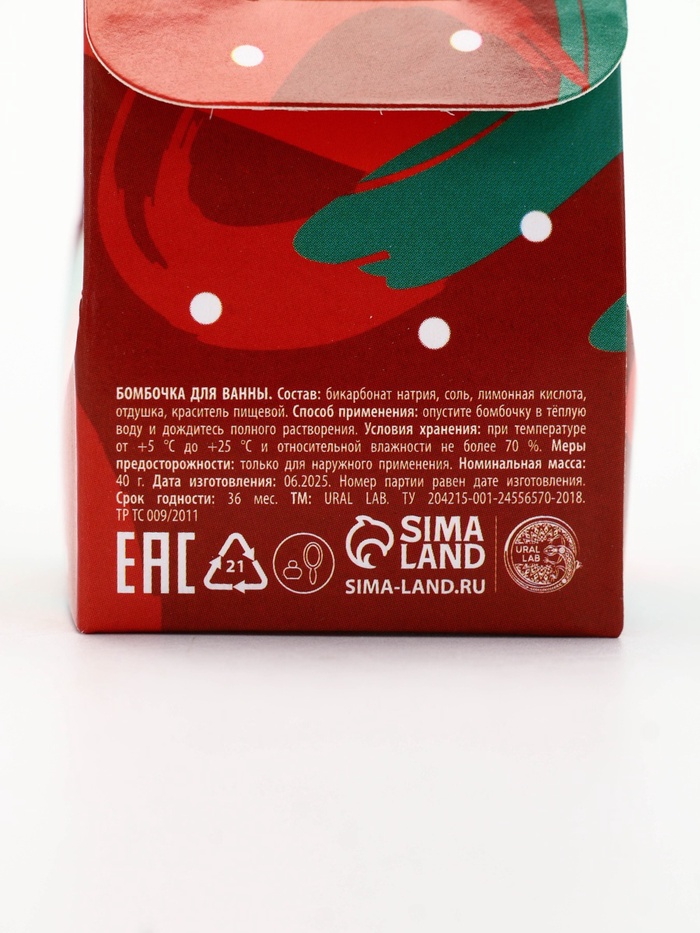 Бомбочка для ванны Happy New Year, 40 г, аромат ванильные мечты, Ural Lab — Характеристики
