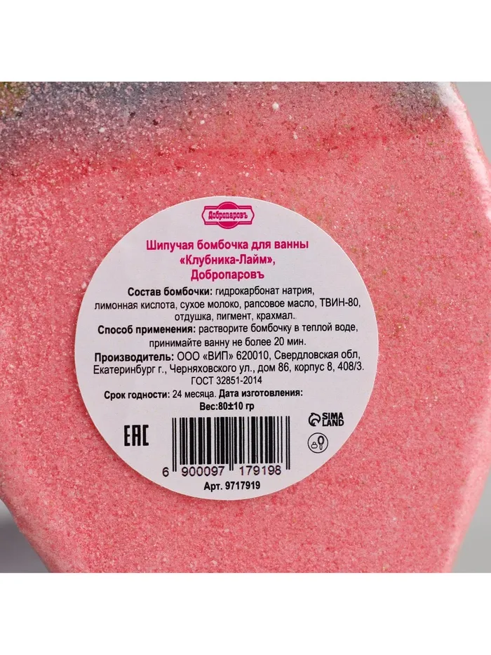 Бомбочка для ванны "Клубника-Лайм", 80 г — Характеристики