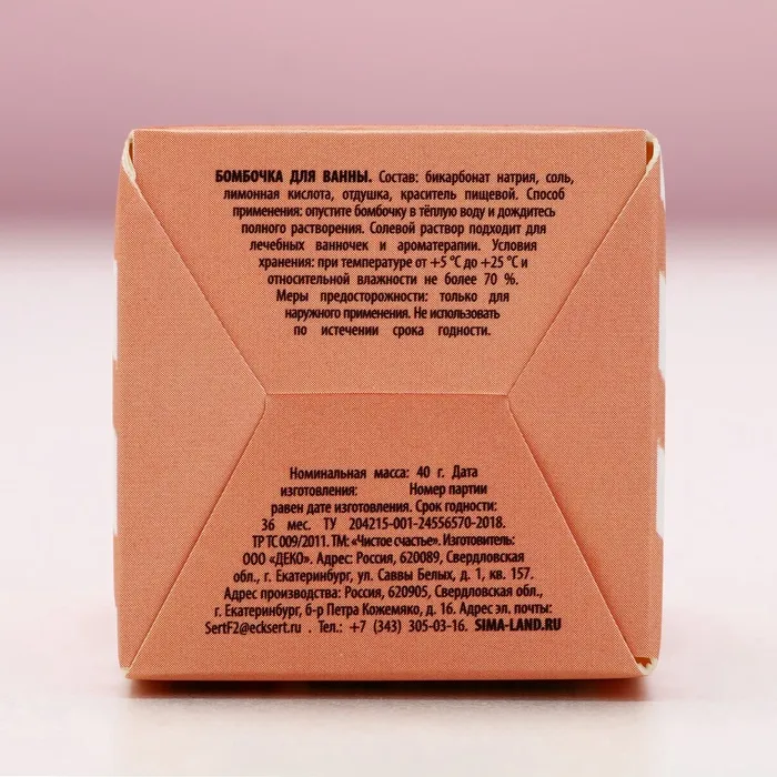 Бомбочка для ванны «Люблю только тебя», 40 г, аромат земляники, Чистое счастье — Характеристики