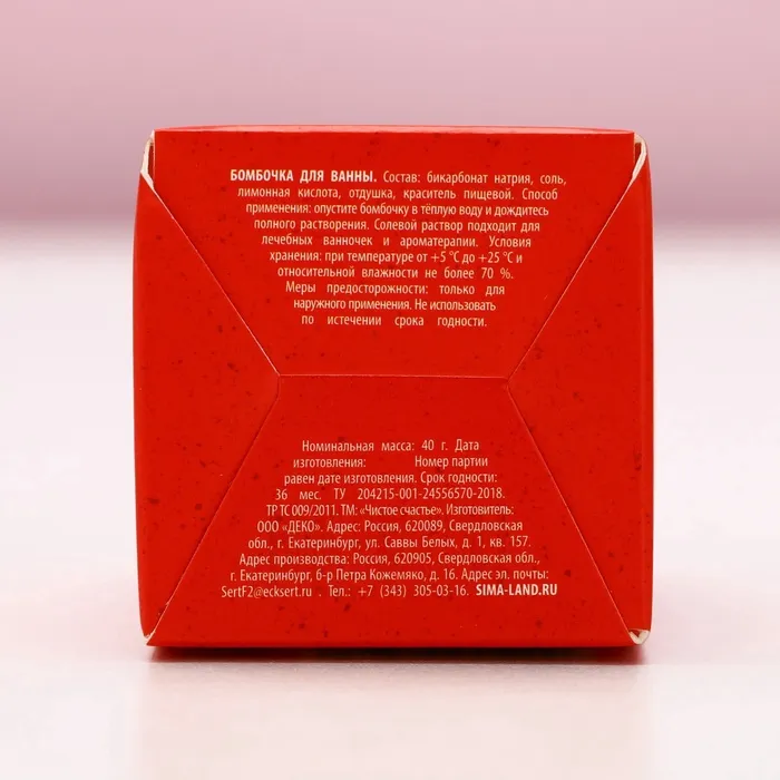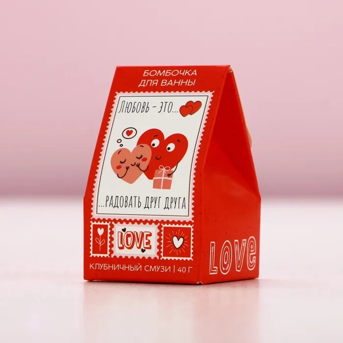 Бомбочка для ванны «Любовь - это…», 40 г, аромат клубничный смузи, Чистое счастье — Характеристики