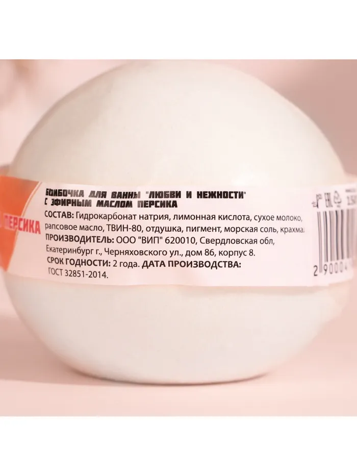Бомбочка для ванны "Любви и нежности" с эфирным маслом персика, 140 гр — Характеристики